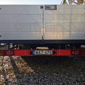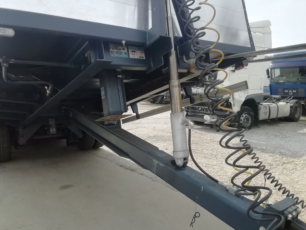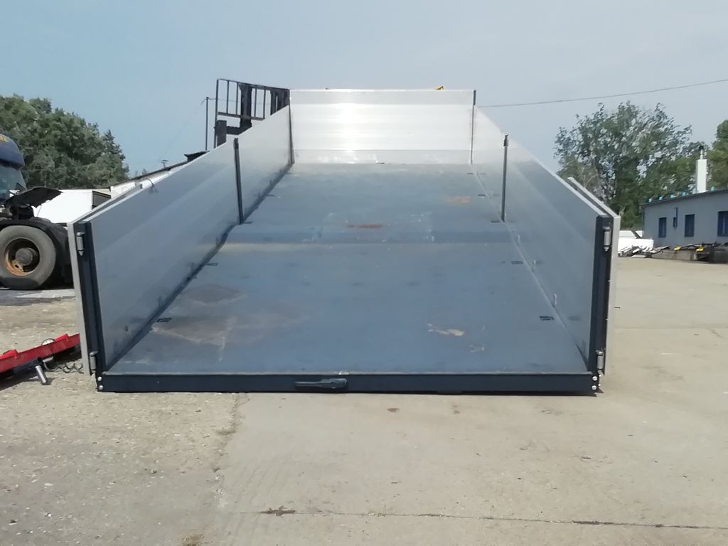 Teljes mértékben felújított pótkocsi. Kettős használati céllal: 1, nyitott oldalfalas áruszállító 2, gépszállító trailer. Rakfelület billentésével rámpa nélkül bármilyen munkagép szállítására alkalmas. Felépítmény bordás trepplemezzel borítva, rakományrögzítő fülek.